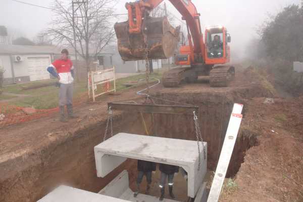 Es una obra que quedara bajo la tierra en medio de una arteria del barrio sur de la ciudad al trancurrir el tiempo quizas nadie se acuerde que es una obra fundamental para la salida del agua en casos de lluvias tanto del sector sur como del barrio oeste .Ana Meiners y sus secretarios hablaron con los vecinos donde les explico que con los impuesto que cobra el Municipio alcanza para el 40 % de los gastos el resto se hace con aportes de lo que se cobra por otros ingresos ,de haber podido cobrar mayor importe por servicios como lo hacen otras localidades se podria realizar mayores obras como la que se verican en avance hoy . Gomez y Franconi notificaron que ahora cuando se. culmina obras en barrio norte vendran a la placita del barrio y mejoraran este sector . Reconocen los vecinos y saben que las obras llegaran cuando esten en orden de pagos de los frentistas.