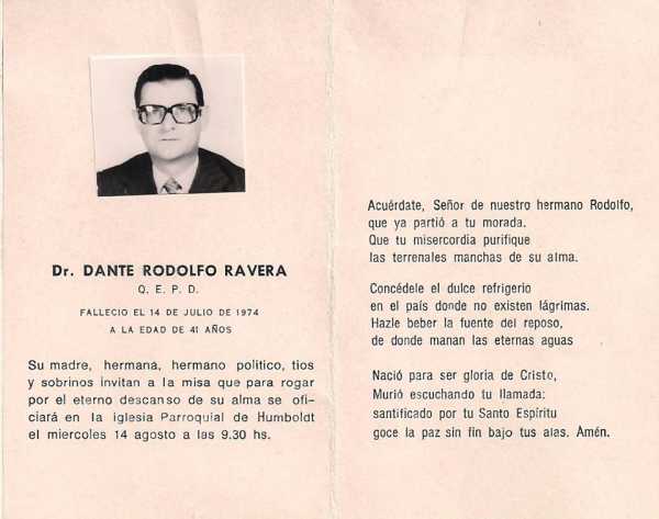 El día 13 de julio se cumple un nuevo aniversario del fallecimiento de….  DR. DANTE RODOLFO RAVERA