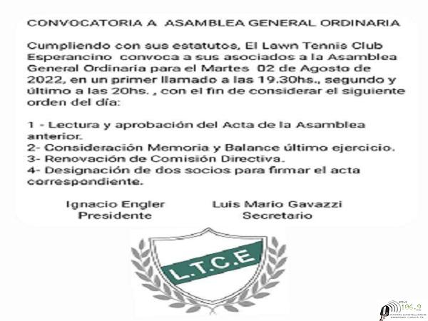 La convocatoria es para el martes 2 de Agosto 19,00 horas