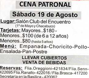 Este sabado 5 y domingo 6 continuan el rezo del Sto Rosario a la hora 18 y la Santa Misa se realizará a la hora 18,30 y el lunes 7 será la Gran Fiesta con los horarios ya detallados y recordando de traer alimento no perecedero para ayudar a los hnos mas necesitados . Se invita a participar estos dias y recibir la bendiciónes de los sacerdotes que estaran presentes