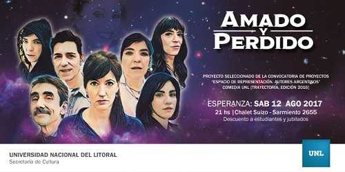 “Amado y perdido”, la Comedia UNL 2016 escrita y dirigida por Lucas Ranzani. La producción fue la propuesta ganadora de la Convocatoria “Espacio de Representación” realizada por la Secretaría de Cultura de la UNL en el marco de Trayectoria.