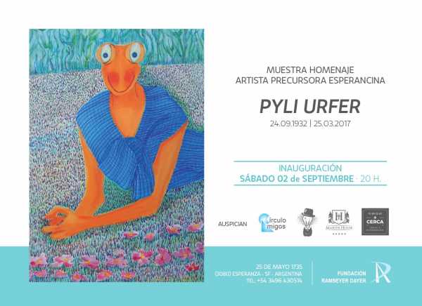 La Fundación Ramseyer Dayer tiene el placer y gran orgullo de invitarlos al primer homenaje a la reconocida artista plástica Pyli Urfer, fallecida en marzo 2017.Los esperamos para acompañar a sus familiares y amigos, como también a recorrer su magnífica obra el día sábado 2 de septiembre a las 20 horas.Lic. Mariana Imhof Gestora cultural FRD