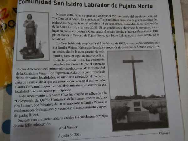Con motivo de celebrarse el dia de la Exhaltacion de la Cruz, incitamos a toda la comunidad de esperanza a participar en la celebracion religiosa a realizarce en la escuela de Pujato Norte el jueves 14/09 a las 20:30 hs.