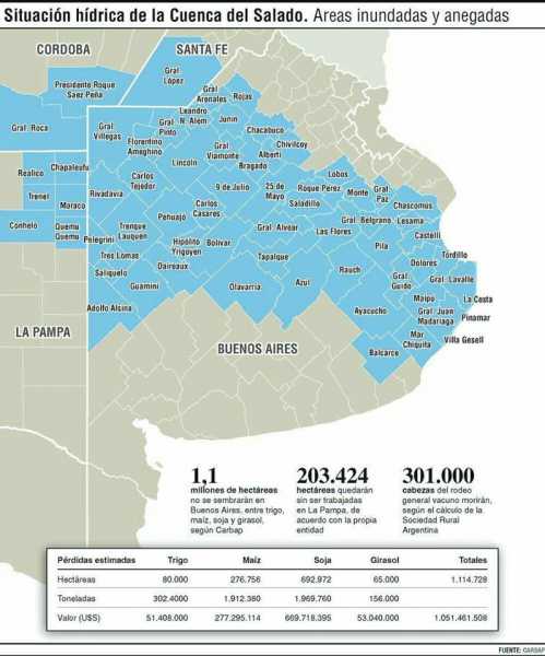 Este mapa de la Prov de Buenos Aires marca los graves problemas que se vive en algunas localidades que con sus zonas de campos  son siempre de gran producción hoy viven este problema donde además se pronostican lluvias para los dias miercoles y jueves de esta semana .