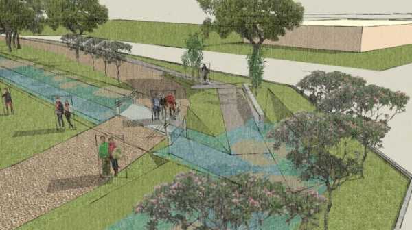 Franconi además explicó que “Hay un excedente importante de agua sobre este sector y esto servirá para retenerla” y precisó que “el objetivo es que sea un reservorio de una profundidad de 80 a 90 centímetros  para poder retener el agua durante un par de horas para luego escurrirla en los canales normales”