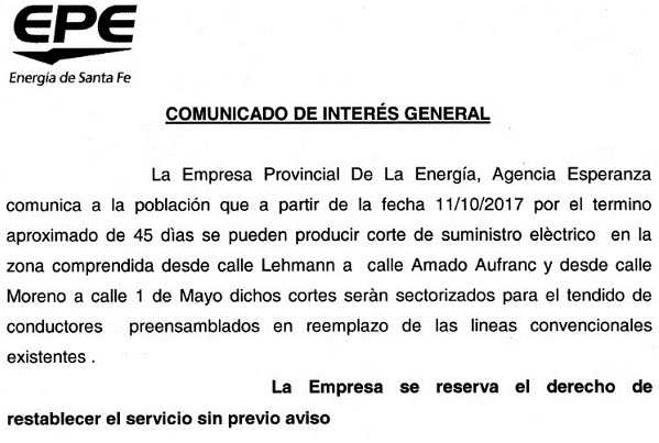 Se produciran cortes en algunos sectores de la ciudad llevara un tiempo para reposición lineas