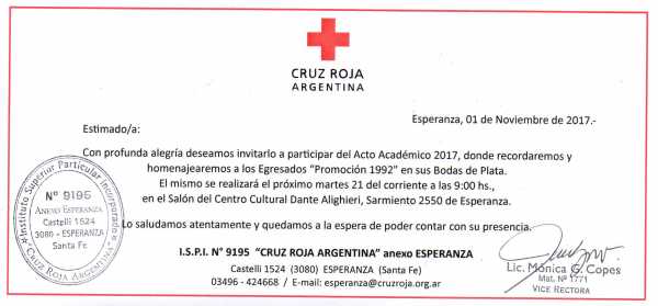 Formulan invitación a la comunidad al acto Clausura ciclo lectivo 2017 en Esperanza