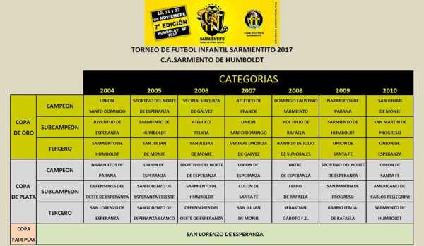 Aqui estan los puestos finales en cada categoria Campeón y Sub Campeón de este Torneo con exito de este 2017