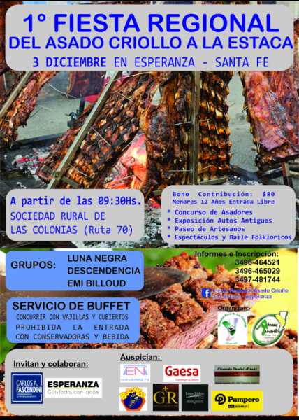 Sera un domingo para llegarse a la rural asado,concurso de asadores, baile y compartir una jornada bien programada para que todo se viva bien, quedan invitados gente de la región para pasar un hermoso domingo