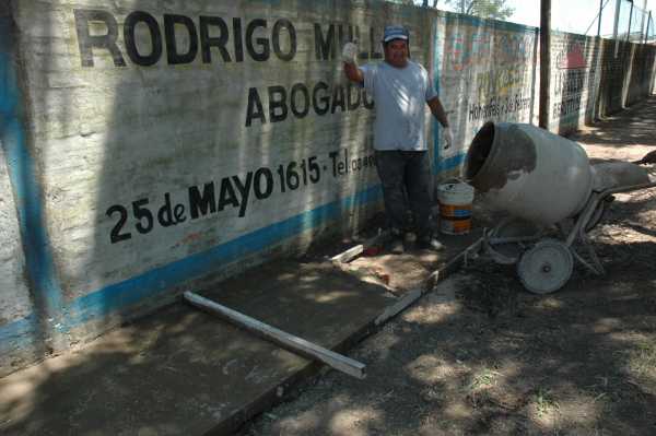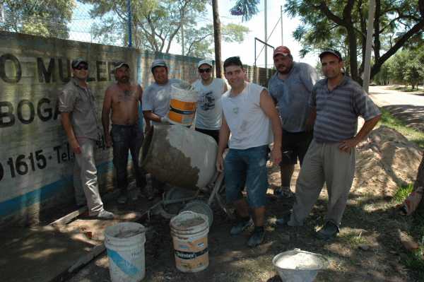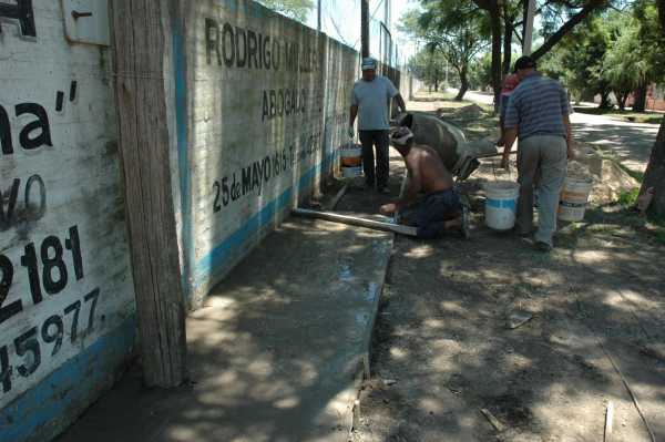 Los Padres de chicos que juegan en la institución tomaron la desición de mejorar y dar posibilidad no solo de embellecer la Institución sino darle a los vecinos que puedan transitar por esta vereda que sera muy importante en los dias de lluvias .