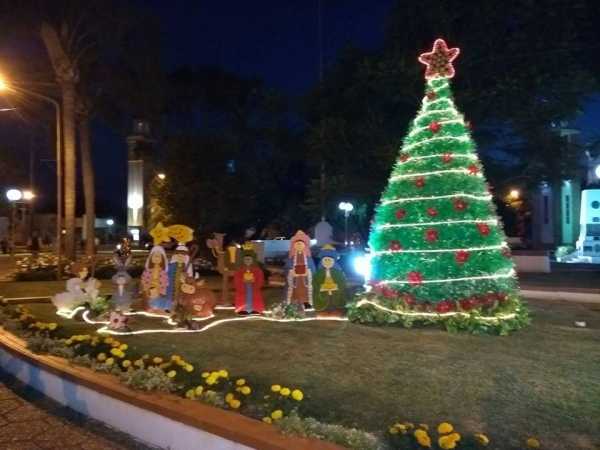 La comuna con motivos de las fiestas de Navidad armaron el arbolito ecologico con envases descartablesy agrego un lindo pesebre en la tradicional plaza de la localidad mirando hacia la avenida principal .