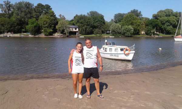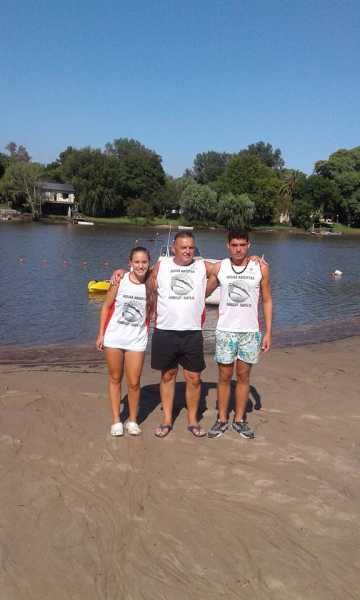 Maratón Acuático Ciudad de Gualeguaychú 2018 7 KM Los competidores del Club Juv Unida de Humboldt Airton Oschtard y Camila Longoni con sus15 y 18 años respectivamente compitieron con nadadores que tienen 21 años de ahi mayores también y el echo de llecar los colores del Club y las banderas de la Mutual junto con Fredy Zimermán es valorable participaron masde 200 competidores