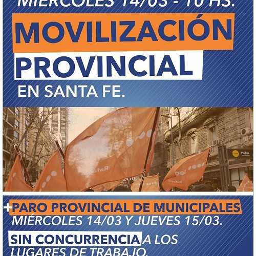 Miercoles 14 y jueves 15 paro de empledos Municipales de la Provincia de Sta Fe sera sin concurrencia a los lugares de trabajos