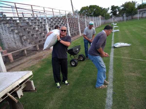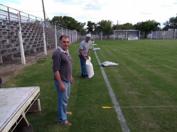 Hoy aprovechando la suspension de la fecha de inferiores, se procedío al sembrado con Rey Grass de nuestro estadio, un gran esfuerzo de la comisión, para poder mantener en optimas condiciones el piso del campo de juego del rojo