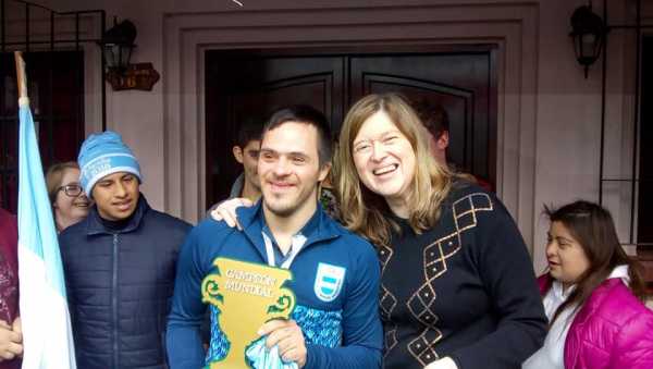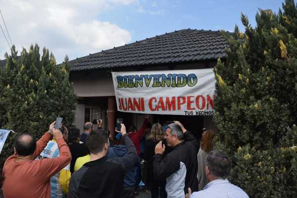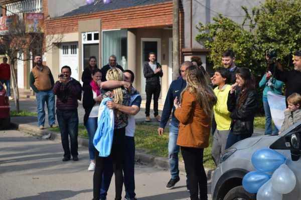 Al mediodia ni la final del mundial empaño la gran caravana de saludos para el campeón esperancino en Alemania y sus familiares ,vecinos ,lo recibieron y tras recorrer el centro de la ciudad llegaron al Club Unión donde desarrolla su actividad junto al profesor Berrio .