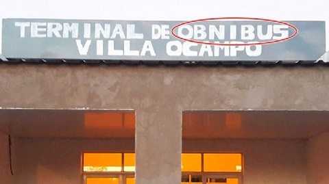 El nuevo cartel de la Terminal de "OBNIBUS" (dixit) de Villa Ocampo se transformó en la burla de todos, o casi todos los habitantes de Villa Ocampo y la región.