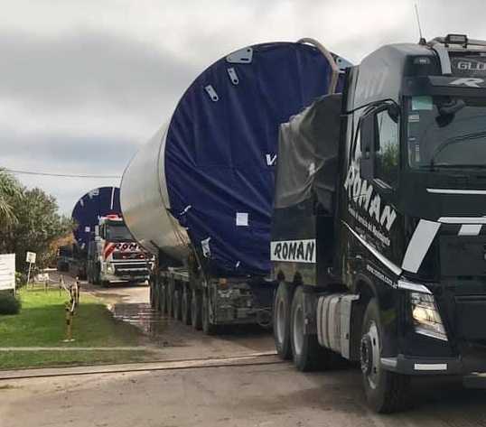 Día de salida de tramos de torres eólicas, en HAIZEA SICA, destino Parque eólico “La Banderita”, General Acha, La Pampa. Fotos Guillermo Bonvin