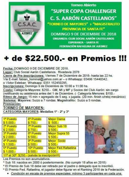 9 de Diciembre ajedrez Copa Aaron Castellanos 2018 importantes premios ver edades