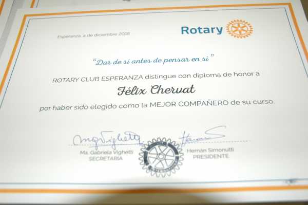 Cerca de 70 alumnos recibieron su distinción tras la elección que realizaron sus propios compañeros. Rotary Club Esperanza entregó el premio “Profesor Miguel Pili Cordini” a los alumnos de escuelas primarias de cada séptimo grado de escuela urbana y rural mientras que Rotaract Club Esperanza entregó la distinción al “Compañero Más Servicial” a los alumnos que egresan de las escuelas secundarias.