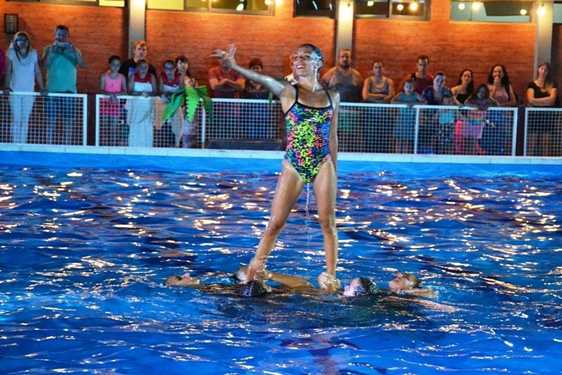 La noche comenzó con la representación de un cuento por parte de los chicos de la escuelita de verano y de la colonia de vacaciones, para continuar luego con la participación del seleccionado nacional de nado sincronizado quienes se llevaron todos los aplausos del público presente.