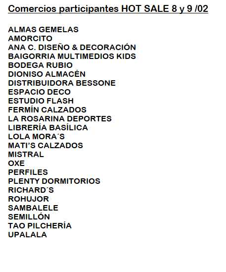 Los comercios que enumeramos (oprimiendo foto principal) estaran este viernes 7 y sábado 8 esperando su visita con super descuentos son asociados de UCOES Esperanza