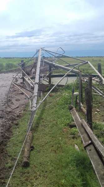 Hace poco tiempo fue las fuertes lluvias que perjudico cosechas y pasturas ahora este fuerte temporal de la madrugada con una cola de tornado esto se nota en las fotografias el desconcierto que tienen los deesta región es increible. Casa,galpones ,silos,molinos ,arboles todo tocado para inutilizar es muy lamentable.( Para ver fotos oprimir foto principal)