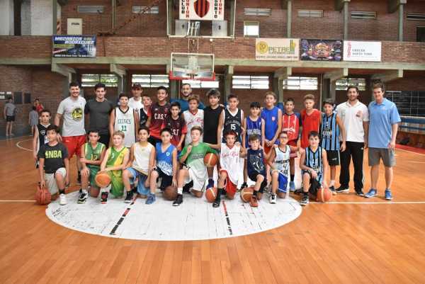 Los jugadores del Club Alma Juniors Gonzalo Lozicki y Santiago Blainq entrenaron con la Asociación Santafesina de Básquet en el marco del Proyecto Mini que tuvo su segundo encuentro este domingo en el estadio del Club Unión de Santo Tomé.