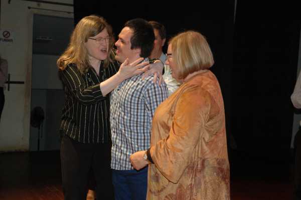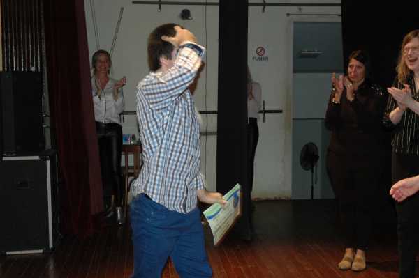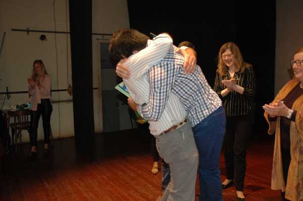 Y llegó el momento esperado y se dio el porque se premiaba a este gimnasta Esperancino y luego se dio el nombre de Juan Pablo Alarcón y sus padres no lo podian creer y entre los tres se abrazaron con entusiasmo y el galardonado subió al escenario y alli fue recibido por Ana Meiners y se abrazó con muchos y se notaba las emociones . Luego se dio un agape a los premiados y de sobremesa muchos seguian contando anecdotas según la disciplinas y los organizadores ya relajados mencionaban que bueno que es valorar a cada disciplina deportiva . VIVA EL DEPORTE Y LOS BUENOS DEPORTISTAS Y DIRIGENTES.