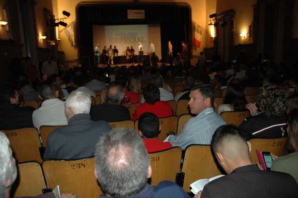 la sala del Dante estaba completa y afuera en pantalla gigante se emitia lo que sucedia en el escenario mucho público y eso motivo a las chicas de sol Gym y a las chicas del liceo Municipal que hicieron coreografias ,que hicieron hacer palmas a los presentes con vestimentas coloridas y tambien fueron premiadas.