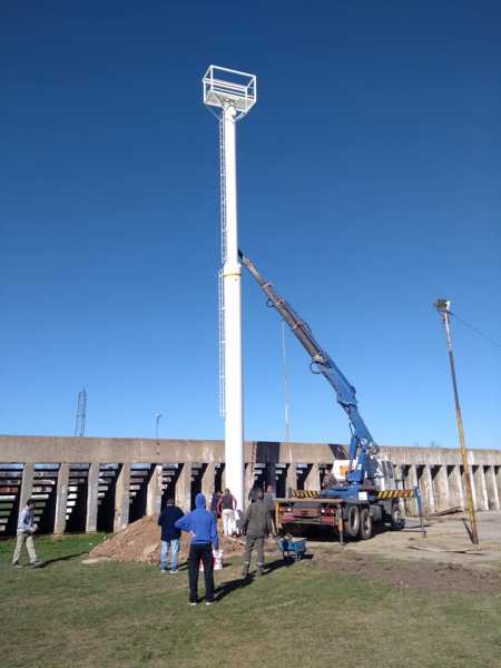 Asoc Dep Juventud recibió y se colocan las nuevas torres de iluminación en campo de deporte