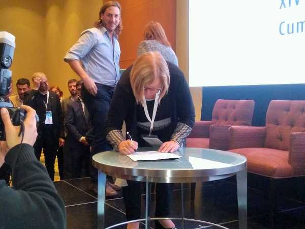 La Intendente Ana Meiners junto a la titular de la Secretaría de Promoción Social recibieron en la mañana de hoy la Certificación de Municipio Responsable en el marco de las XIV Jornadas Nacionales de Municipios Saludables y Cumbre de Alcaldes e Intendentes de las Américas que se desarrolla en Mendoza.