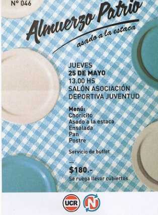 invitación que realizan para el 25 de Mayo UCR- NEO para compartir al mediodia en Asoc Dep Juv