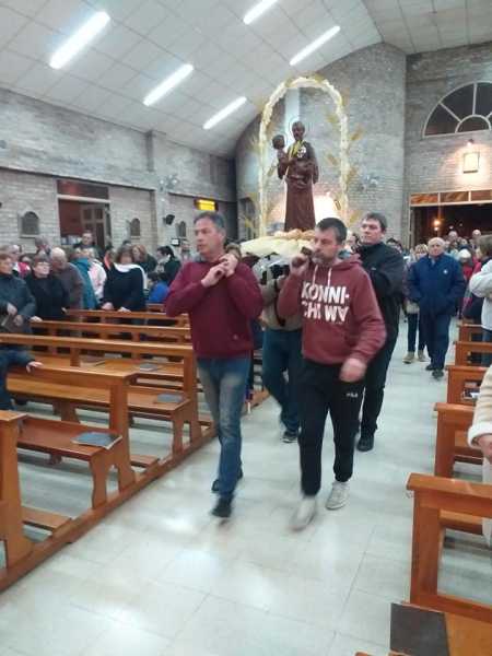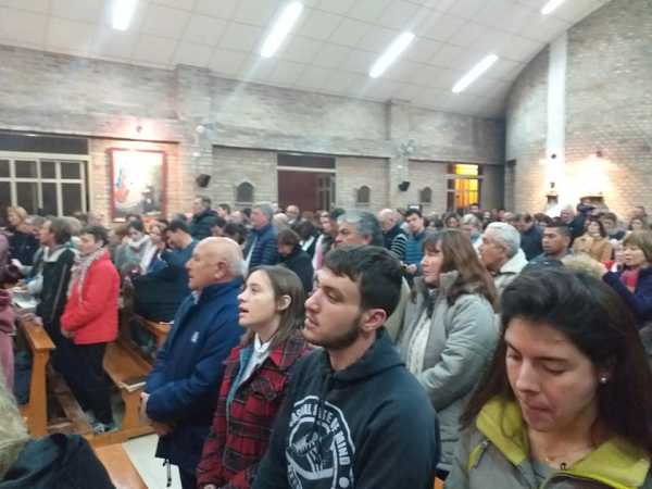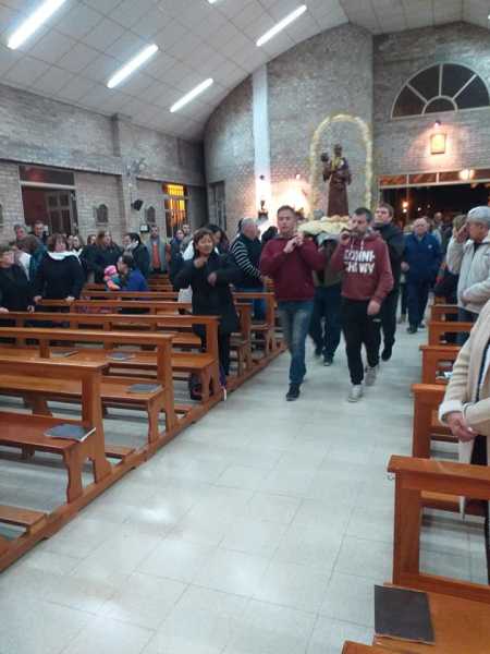 A pesar de la fria noche los fieles caminaron por las calles del barrio y participaron de la Sta Misa y la distribución