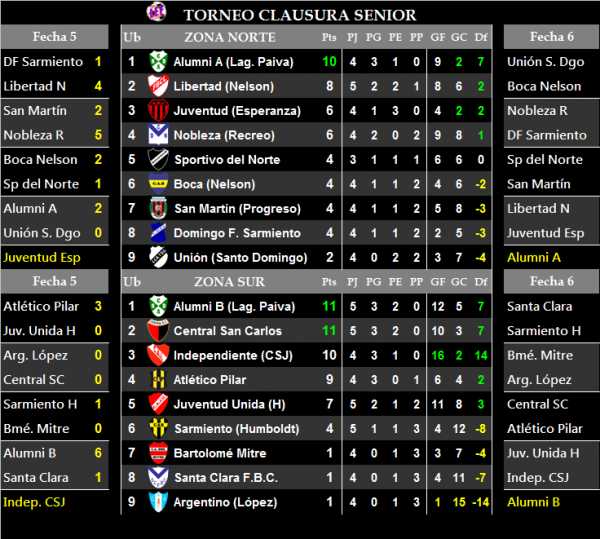 Apenas hace instante finalizaron los 8 partidos que conformaron la quinta fecha del Torneo Clausura Senior. Aquí te informamos todos los resultados finales y actualizamos las Tablas de Posiciones de ambas Zonas.