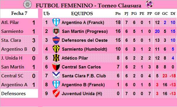 FÚTBOL FEMENINO FECHA 7 Viernes 25 de octubre de 2019
