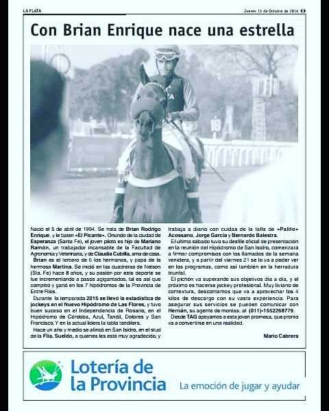 Cada vez se cumplen mas los sueños del Esperancino como la prensa de San Isidro lo nombran lo buscan muchos de los mejores stud se va convirtiendo en ganador y eso lo hace Feliz