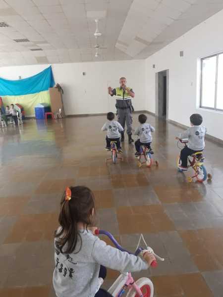 Inspectores municipales visitaron a los pequeños del Jardín Deportivo del Club Alma Juniors para brindarles una charla informativa e interactiva sobre las normas viales.