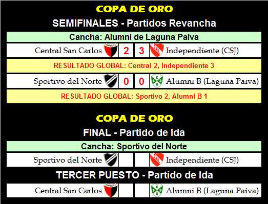 COPA DE ORO - SEMIFINALES - Partidos Revancha