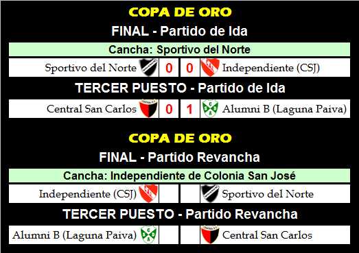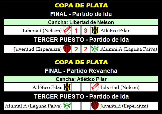 En las imágenes les informamos los 4 resultados finales y en espera de las Revanchas. La Copa se Plata se definirá el próximo miércoles 20 en cancha de Atlético Pilar. En cuanto a la Copa de Oro, se jugará el viernes 22 en cancha de Independiente de Colonia San José.