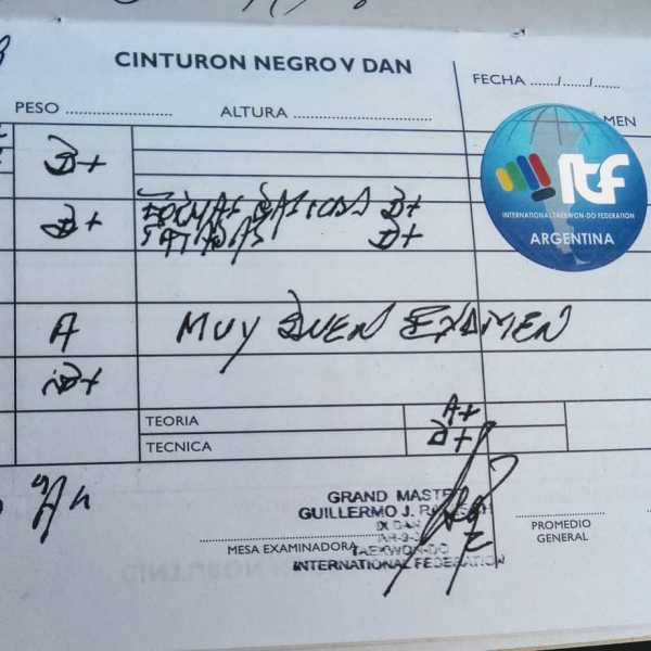 Bueno hoy se dio un paso más en el camino del Taekwon-do ese que comencé en 1983, ahora vino el V Dan ITF y quiero agradecer a Dios, a la Vida, a mi familia Ana Amherdt, Francisco Joaquín y Jeremías mis motores, a mis hermanos en taekwon-do Fabio Oldani y Heladio Carrizo, a mis alumnos walterkinderknecht, al nuestro GM guillermomitoramisch que siempre nos alienta y enseña en cada examen, a mis compañeros de Taekwon-do a David Bertinat y a todos los que de alguna u otra forma me ayudaron les comparto mi felicidad por este logro alcanzado, abrazo grande.