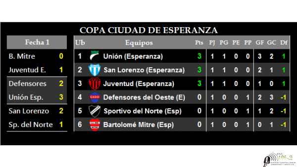 Anoche se disputó la primera fecha de una nueva edición de la Copa Ciudad de Esperanza. Torneo amistoso preparatorio entre los séis equipos de la capital departamental.