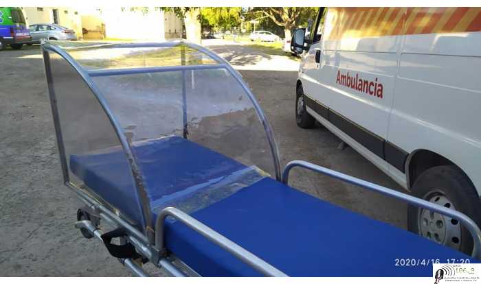Silvio Gullermo Marzola y sra, junto a su equipo de trabajo.realizó esta reforma en la camilla que deben trasladar personas que pueden estar con la pandemia para dar mas seguridad a los enfermeros ,camilleros y medicos.