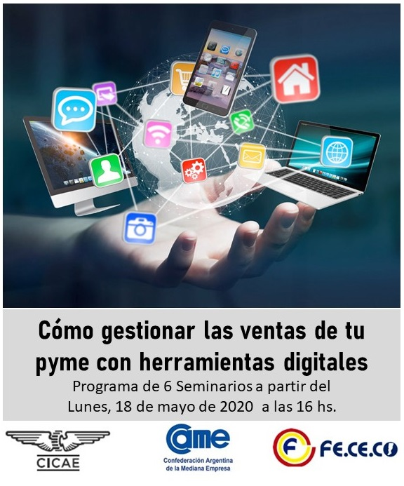Desde la Confederación Argentina de la Mediana Empresa (CAME), a través de su Secretaría de Capacitación, informa a sus entidades asociadas que se dictará el Programa "Cómo gestionar las ventas de tu Pyme con herramientas digitales".